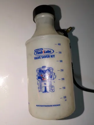 Kit de dosificador para Valve Saver da Flash Lube. Inclui um recipiente graduado para controlar o nível do líquido. - Recipiente graduado em ml. - Marca: Flash Lube. - Protegido por marcas registadas em todo o mundo.