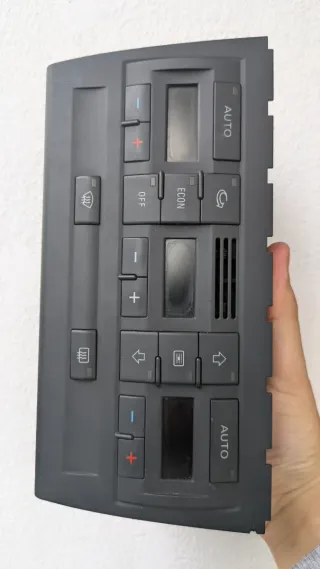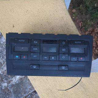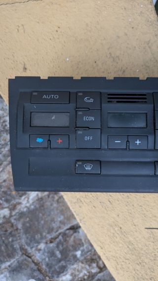 Painel climatronic para Audi A4 B6, com bancos aquecidos. Está em bom estado. - Modelo 1 Din. - Inclui controlo de bancos aquecidos. - Funções: AUTO, ECON, OFF, regulação de temperatura.