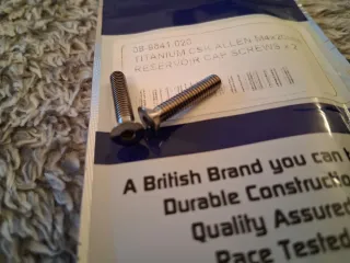 Conjunto de dois parafusos para reservatório, feitos de titânio. - Material: Titânio - Tipo: CSK Allen - Medida: M4x20mm - Quantidade: 2 unidades - Marca: A British Brand
