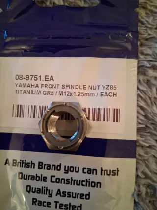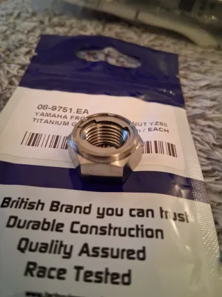 Porca de eixo dianteiro em titânio para Yamaha YZ85. Oem number 90185-12134 90185 -12010 M12 x 1.25mm - Peça de reposição de alta qualidade. - Construção durável. - Testado em corrida.