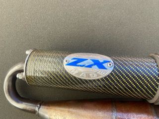 Escape LeoVince ZX para Gilera y Piaggio. Fabricado en metal con detalles en carbono. - Marca: LeoVince - Modelo: ZX - Compatibilidad: Gilera, Piaggio - Material: Metal y carbono
