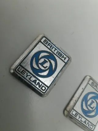 Conjunto de emblemas metálicos para vehículos clásicos. - Diseño: British Leyland - Compatibilidad: Authi Morris Mini - Material: Metal Valor nao negociável