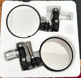 Conjunto de espelhos redondos para moto. - Cor preta. - Design moderno. Poderá ser necessário colocar um casquilho novo no interior , dependendo da moto