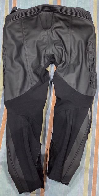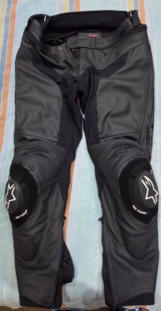 Calças de mota Alpinestars Missile V3 em pele. - Cor: Preto - Tamanho: 56 (Europa) - Material: Pele e têxtil - Proteções nos joelhos - Fecho lateral nas pernas