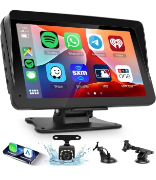 Ecrã de 7 polegadas com compatibilidade Carplay wireless. - Ecrã tátil. - Suporte ajustável incluído. - Compatível com Android Auto.