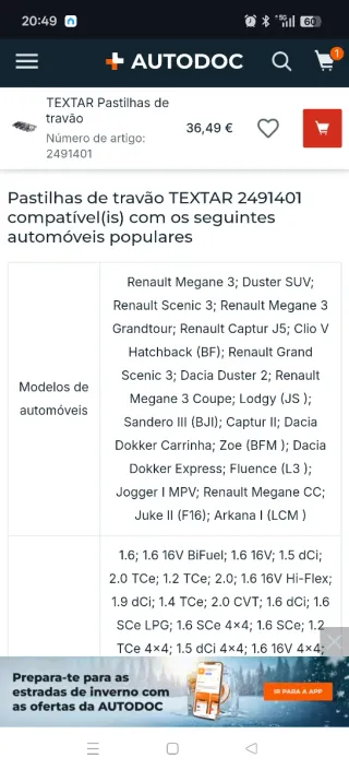 Pastilhas de travão da marca TEXTAR, compatíveis com vários modelos de automóveis. - Número de artigo: 2491401 Compatível com vários carros, Megane, zoe, Clio ( ver foto )