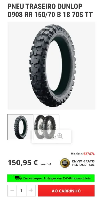 Pneu traseiro Dunlop D908 RR. Ideal para enduro ou rally RAID big trail . Usado 80km como novo conforme fotos demonstram. Sem defeitos. Custou 150€ - Medida: 140/80 B 18 - Índice de carga: 70S - Tipo: TT