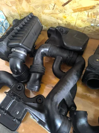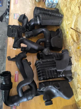 Conjunto de caixa de filtro de ar e tubagens para Peugeot 106 e Citroën Saxo.❌⚠️Pode ser recolhido no Porto (não faço envio para Espanha,mas posso entregar na Galiza) - Componentes em plástico preto. - Inclui várias peças de tubagem e a caixa do filtro.