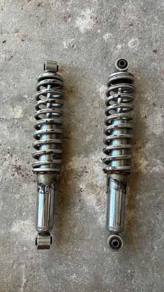 Par de amortiguadores para Yamaha Banshee en buen estado. - Listos para instalar. - Piezas de repuesto para tu moto. 2x Amortecedores estavam montados numa yamaha banshee, penso que foram cromados, em bom estado