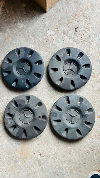 Conjunto de quatro tampões originais para Mercedes Vito. Peças em bom estado, prontas para dar um novo visual ao seu veículo. - Design com o emblema Mercedes-Benz. - Cor preta. - Compatíveis com jantes Mercedes Vito.