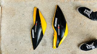 Conjunto de carenagens laterais para Yamaha Aerox. - Cor amarela e preta. - Em estado - inteiras