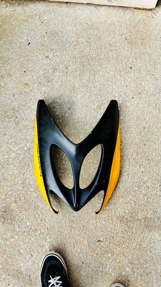Carenagem frontal para Yamaha Aerox. - Cor preta e amarela. - Design esportivo.