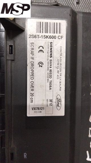 Centralina S120977010D | 5CPF | 2U7A12A650TG | FO0864 | Peças VFV provenientes Centro Abate Certificado e licenciado (TUA20171016000198) Contacte-nos pelas mais diversas Peças Auto Multimarca ( motores, caixas velocidades, peças de carroçaria, eletrónica e interiores) pelo +351939385869 ! Junto o nosso horário: Horário de 2.ª a 6.ª 09:00h - 13:00h 14:30h - 18:30h A nossa morada é: Rua da Ribeira, Viv. Susana, Lote 24 - Armazém C Vale do Forno Odivelas 2675-258 Portugal Gratos pela vossa atenção MSP Peças Usadas