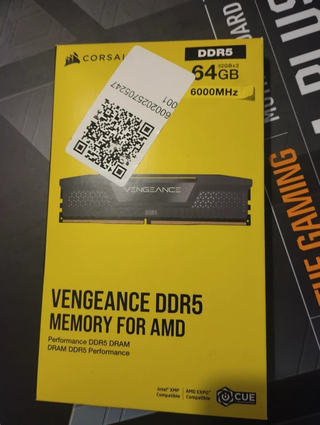 Kit de memória RAM Corsair Vengeance DDR5. - Capacidade total de 64GB (2x32GB). - Velocidade de 6000MHz. - Compatível com Intel XMP e AMD EXPO.