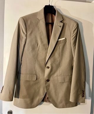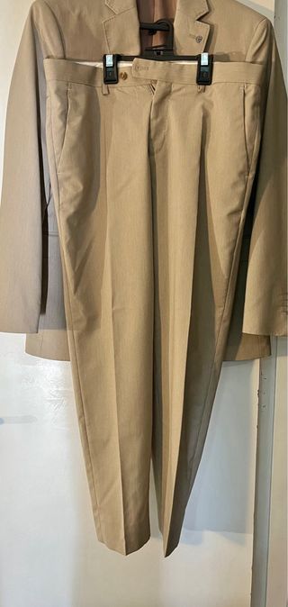Fato elegante em tom bege. - Dois botões frontais. - Bolsos frontais com aba. - Detalhe de pin na lapela. - Botões nos punhos. Usado apenas 1 vez Igual a novo