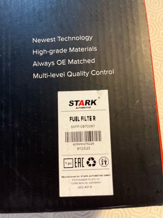 Filtro de combustível STARK. - Tecnologia mais recente. - Materiais de alta qualidade. - Correspondência OE. - Controlo de qualidade multinível. - Fabricado na Alemanha.