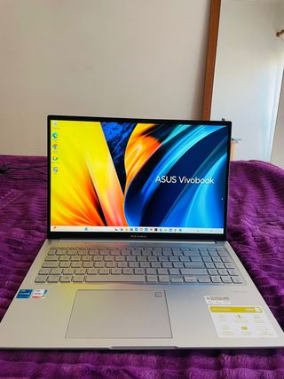 Portátil ASUS Vivobook em acabamento prateado e cinza. Processador: Intel Core i5 • Gráficos: Intel Iris Xe (ótimo para trabalho, estudos e uso diário) • Tela: Aproximadamente 15,6” • Teclado: Layout europeu (PT/ES) • Leitor de impressão digital (fingerprint) • Conectividade: HDMI, Wi-Fi • Design: Slim, moderno, cor clara (silver/cream) • Estado físico: • Muito bem conservado • Pequenos sinais estéticos normais de uso • Tela íntegra • Teclado e touchpad em ótimo estado
