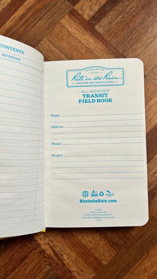 Caderno Rite in the Rain de cor amarela, ideal para trabalho de campo e más condições meteorológicas. - Capa resistente. - Modelo Transit Nº 300F.