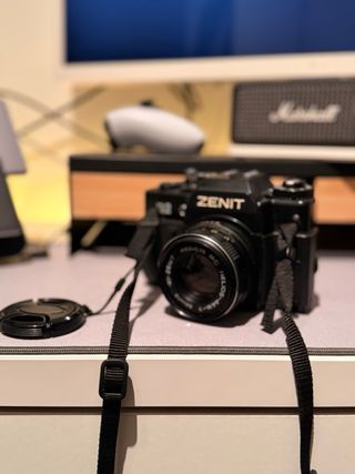 Vendo conjunto analógico Zenit composto por: • Câmara Zenit 122 (35mm) ⚠️ Fotómetro / leitura de luz NÃO funciona (avaria eletrónica causada por pilhas antigas). 👉 Todo o resto funciona: obturador, avanço e rebobinagem do filme, espelho e mecânica em bom estado. Ideal para uso 100% manual (Sunny 16, fotómetro externo ou app). • Objetiva Helios-44M-7 58mm f/2 (M42) Clássica lente soviética, conhecida pelo bokeh swirl. Foco suave, diafragma funcional, sem fungos visíveis. Inclui • Corpo Zenit 122 • Objetiva Helios-44M-7 • Tampa da objetiva ❌ Correia NÃO incluída ❌ Pilhas NÃO incluídas Preço NEGOCIÁVEL