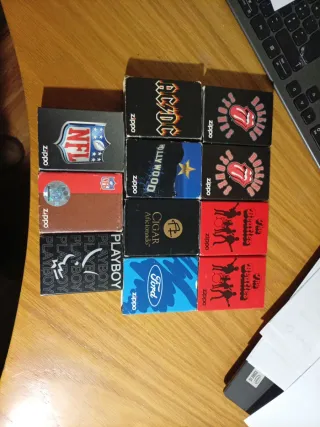 Conjunto de caixas metálicas Zippo com diversos temas. - Rolling Stones - The Beatles - NFL - Cigar Aficionado - Playboy - Ford - Hollywood - AC/DC Venda mínimo 2 caixas 12€ Inegociavel ROLLING STONES vendidas