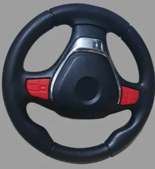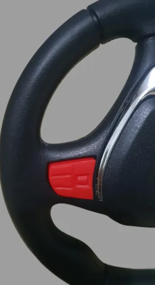 Volante de coche de alta calidad en color negro con detalles en rojo. - Diseño moderno y deportivo. - Acabado mate en la zona de agarre. - Detalles cromados en el centro.