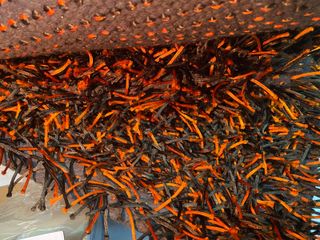 Tapete de entrada em tons de castanho e laranja, em excelente estado. - Textura felpuda e moderna. - Ideal para hall de entrada ou corredores. Medida: 1.55x0.80