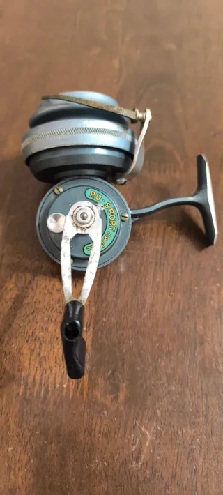Carrete de pesca Ru-Sport antiguo Todo original, usado 100% Funcional.