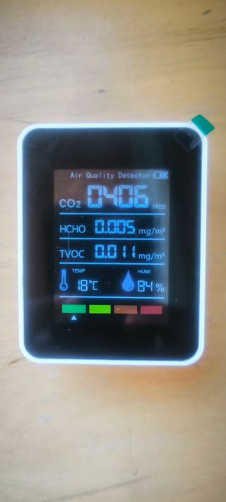 Este aparelho mede a qualidade do ar em tempo real. - Mede CO2, HCHO e TVOC. - Indica a temperatura e humidade. - Possui um indicador visual de qualidade do ar.