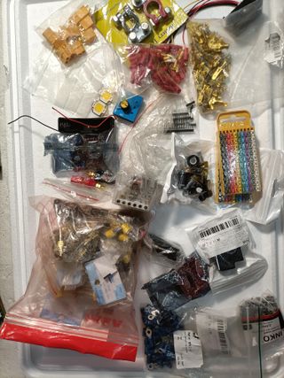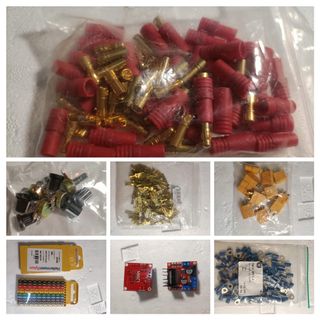 Diversos componentes eletrônicos para projetos, novo ou com pouco uzo. Tdo a funcionar. - Conectores XT60 - LEDs de alta potência - Terminais elétricos - Resistores - Transistores - Potenciômetros - Conectores de bateria - Conectores de alimentação - Terminais de anel - Marcadores de fio Tudo o que va foto principal.