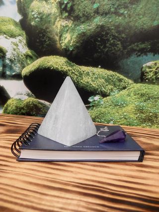 As pirâmides, com sua forma única, são conhecidas por concentrar e amplificar a energia, tornando-se um excelente meio para energizar cristais. Principais usos e Aplicações da Selenita - Limpeza energética de outras pedras, proteção contra energias negativas, contacto com os guias espirituais, elevação espiritual, Purificação energética, acalma a mente a as emoções, fortalecer a mediunidade e a intuição. 📌 Piramide 100% Natural 📌 Origem Marrocos. 📌 Altura - 10 cm Aprox. 📌 Base - 7 x 7 xm Aprox. NOTA: Decoração não incluída, meramente ilustrativa. Obs: Por ser um cristal natural e por ser lapidado á mão, as peças podem não ser