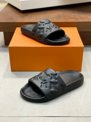 Chinelos Louis Vuitton em preto, nunca usados. - Design acolchoado com monograma. - Material em borracha. - Sola confortável.