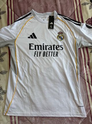 Camisola do Real Madrid para a época 2025/2026, com o nome e número de Mbappé. - Design moderno com detalhes em dourado. - Tecnologia Aeroready para maior conforto. - Escudo do clube bordado. -Envio rapido📦