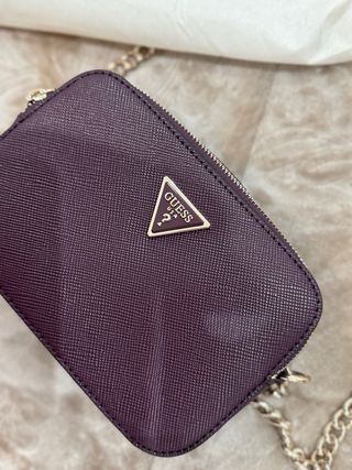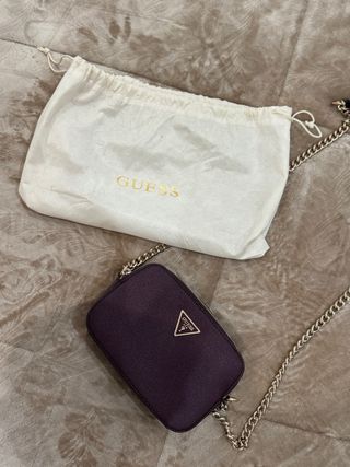 Mala pequena da Guess, perfeita para levar o essencial. - Design elegante com fecho de correr. - Detalhe de corrente prateada. - Inclui saco de proteção da marca. -Nunca foi usada.