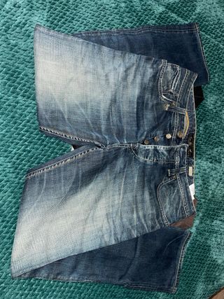 Conjunto de 3 camisolas e 1 calça da marca Salsa. - Camisola preta com textura. - Camisola castanha com detalhes nas mangas. - T-shirt verde-oliva com gola polo. - Calça de ganga azul escura.
