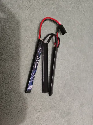 Bateria LIPO de 11.1V com capacidade de 1450mAh. Ideal para airsoft. Tenho duas, 18 cada ou 25 se comprar as duas - Pouco uso, menos de 3 ciclos. - Marca: BlueMax