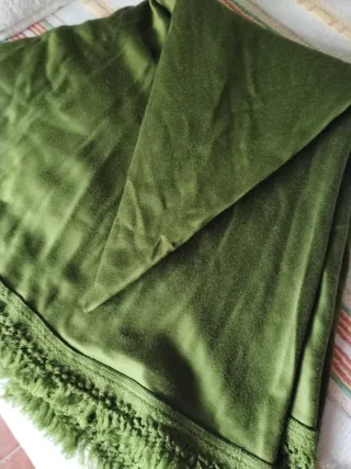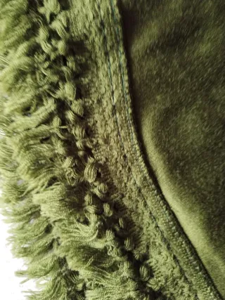 Saia de camilha com franjas. Diâmetro 2,60 - Cor verde. - Material: aveludado - Detalhe de franjas na barra.