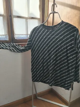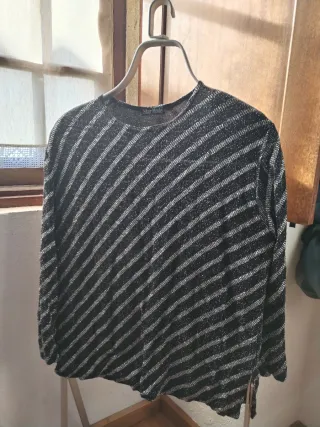 Camisola com um design moderno e elegante, perfeita para diversas ocasiões. - Padrão de riscas diagonais. - Tecido com brilho. - Gola redonda.