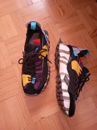Tênis da marca Exe com um design moderno e cheio de cores. Perfeitos para quem busca estilo e conforto no dia a dia. - Combinação vibrante de cores: preto, roxo, amarelo e azul. - Cadarços pretos. - Detalhes em tecido e camurça.
