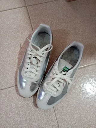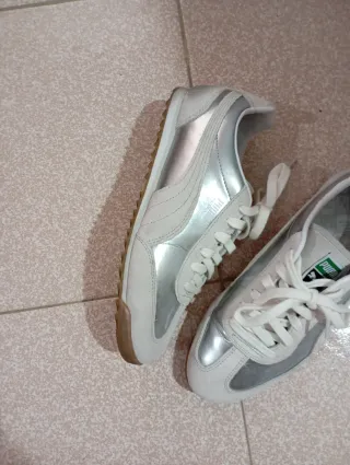 Tênis da marca Puma em cores prata e branco. - Design esportivo. - Fechamento com cadarço. - Logo da marca na lateral e na palmilha.