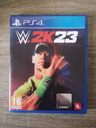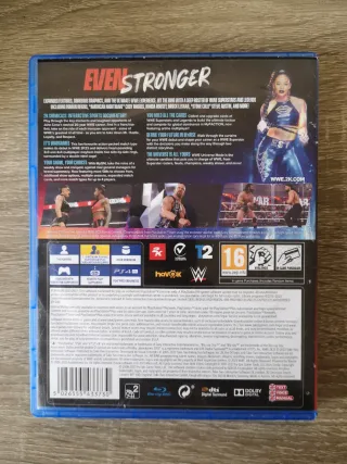 WWE 2K23 para PS4. A caixa tem um defeito visível na última fotografia.