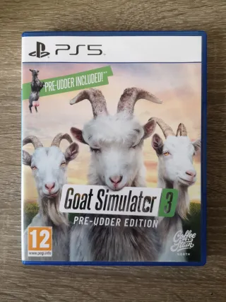 Goat Simulator 3 (Pre-Udder Edition) para PS5. A caixa tem um defeito visível na última fotografia.