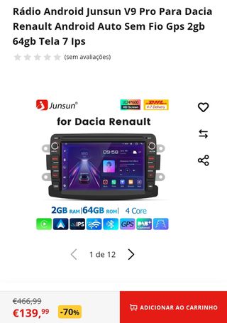 Rádio Android Junsun V9 Pro compatível com Dacia e Renault. Funciona perfeitamente - Ecrã IPS de 7 polegadas. - 2GB de RAM e 64GB de ROM. - Processador Quad Core. - GPS integrado. - Carplay sem fios.