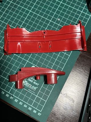 Conjunto de peças para modelo Kyosho Ferrari F2004 na escala 1/8. Asa dianteira e nariz em lexan - Peças para montagem de modelo. - Escala 1/8. - Marca Kyosho. - Modelo Ferrari F2004.
