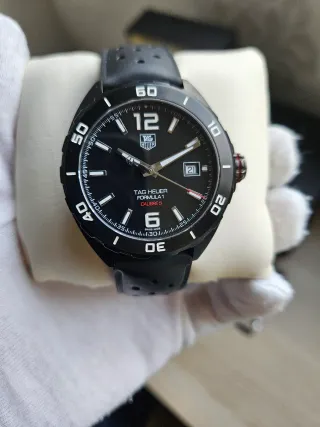 Relógio TAG Heuer Formula 1 com movimento automático. 41mm diâmetro movimento automático calibre 5 com 42h de reserva de energia cristal de safira bezel rotativo unidirecional coroa de rosca bracelete em borracha oferta de bracelete em pele com acabamento em carbono