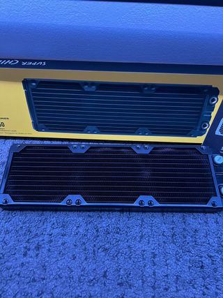 Radiador de refrigeração líquida de alto desempenho. - Design fino para maior compatibilidade. - Construção robusta para durabilidade superior. - Compatível com sistemas de refrigeração líquida personalizados de G1/4”. - Por +40€ é possível enviar outro igual.