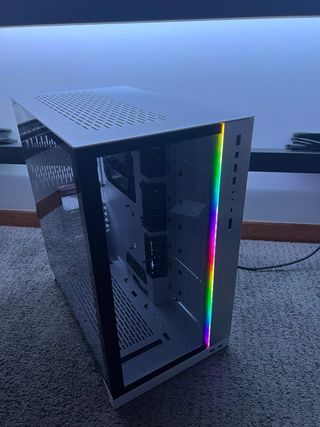 Caixa de computador Lian Li O11 Dynamic ROG Edition na cor branca. Design moderno e espaçoso. - Painéis em vidro temperado. - Excelente fluxo de ar. - Espaço para múltiplos ventiladores e radiadores.