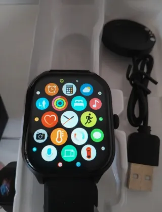 Compatível com android e IOS ( Apple ) DESCRIÇÕES : Permite fazer e receber chamadas✅ Permite receber notificações de mensagens normais e das redes sociais✅ Monitor de batimentos cardíacos, pressão arterial, oxigenação do sangue ✅ Temperatura Corporal✅ 👣 Passo-metrô ✅ Modos de exercícios✅ Permite localizar o telefone pelo Watch✅ 📅Calendário✅ Calculadora✅ Cronômetro✅ Lembrete✅ 🔋 Carregamento fácil e boa durabilidade E muito mais…