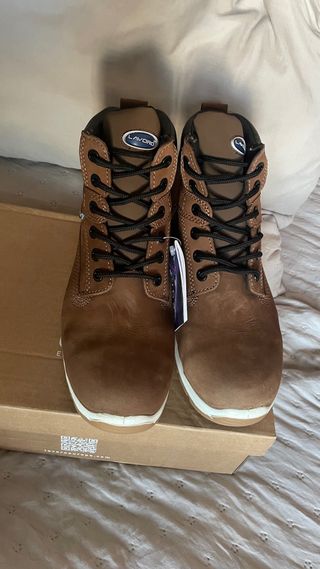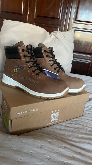 Botas de segurança Lavoro em castanho. - Modelo E17. - Fecho com atacadores. - Sola de borracha.