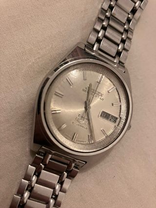 Relógio Automático Citizen Seven Star Deluxe. Em perfeito estado de funcionamento tendo sido revisto em Agosto. Escolhi manter o vidro original tendo este alguns riscos.