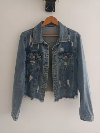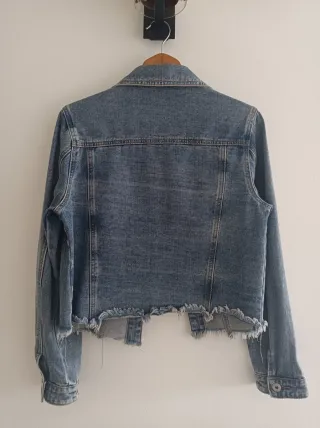 Blusão de ganga em 100% algodão com um design moderno e descontraído. - Acabamento desfiado na bainha. - Bolsos frontais com botões. - Fecho frontal com botões. -Bom estado. Bastante usado, mas bem preservado.